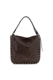 Bolso de piel sintética suave con efecto desgastado y bordes remachados. El logotipo metálico y la correa ajustable le dan un toque informal y moderno.