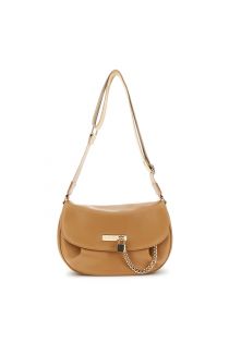 bolso efecto piel con accesorio metálico y candado y cadena. hazelnut