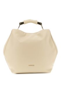 bolso efecto piel con asa metálica y hilo decorativo. cream