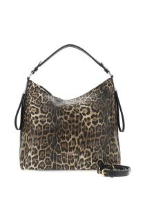 Bolso suave con efecto piel y estampado de leopardo, con bolsillos con cremallera, letras metálicas y charms. Práctico y audaz, cuenta con una correa de hombro extraíble para un estilo informal y versátil.