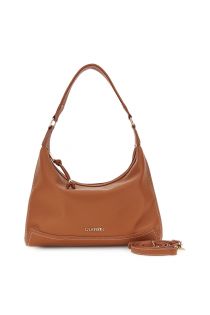 bolso efecto piel granulada con bandolera extraíble de paja multicolor rust