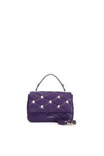 bolso mediano con solapa acolchada y remaches hexagonales purple