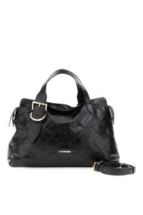 Bolso de mano de piel sintética metalizada con motivo geométrico bordado en la parte delantera y trasera. Asas ajustables con hebillas metálicas con el logotipo y correa de hombro extraíble.