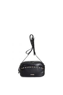 bolso para cámara compacto con piedras cabujón, mini remaches y bandolera black