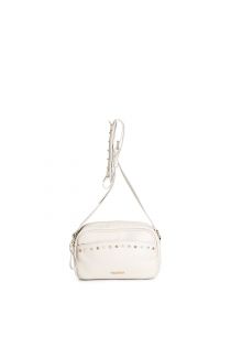 bolso para cámara compacto con piedras cabujón, mini remaches y bandolera ivory