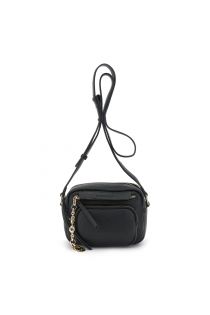 Bolso para cámara con bolsillos delanteros y charm metálico personalizado. compartimento único y bolsillo interno con cremallera. cierre de cremallera.