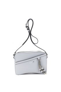 bolso para cámara con efecto piel granulada y colgante con el logotipo de colores sky
