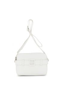 bolso para cámara con efecto piel martillada, motivo de cinturón y accesorio con logotipo. ivory