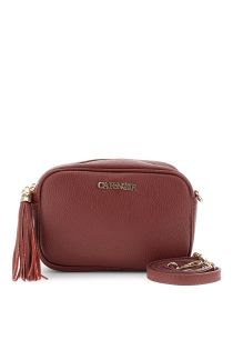 bolso para cámara de cuero martillado con borla bordeaux