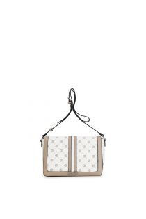 Bolso rígido con solapa larga para llevar con bandolera ajustable logotipo estampado all-over en contraste y rayas verticales en el centro de la solapa.