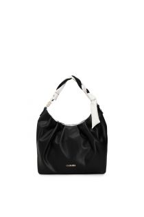 Bolso saco con pequeños pliegues y asa entrelazada de dos colores con accesorio CN personalizado