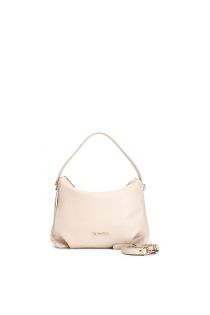 bolso saco de piel texturizada con bolsillo con cremallera powder
