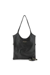 bolso shopper plano de piel martillada con bandolera extraíble black