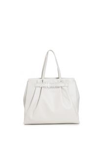 bolso shopping blando con banda portadocumentos personalizada esmaltada del mismo color. ivory