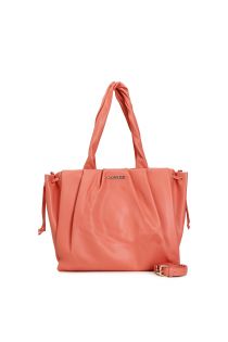 bolso shopping blando con pliegues y cierre de imán y cordón en los laterales orange