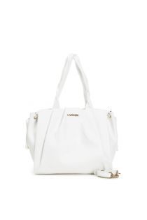 bolso shopping blando con pliegues y cierre de imán y cordón en los laterales white
