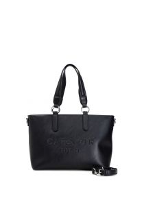 Bolso shopping con material suave y texto «Cafènoir Firenze» estampado en alta frecuencia, nuevas tachuelas personalizadas en las uniones de las asas