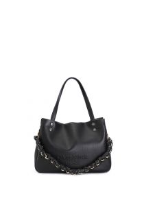 bolso shopping con logo en relieve y bandolera de cadena tejida black