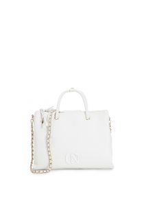 Bolso tote con asas tubulares. logotipo en relieve por toda la prenda y accesorio tono sobre tono. tirador de cremallera con charm. bandolera con cadena incluida.