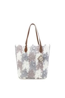 Bolso shopping hecho de encaje con asas en contraste y bolsita interna perfecta para dar color a cualquier look de verano.