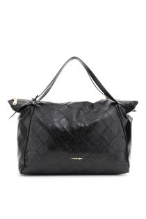 bolso shopping efecto piel metalizada, bordado geométrico black