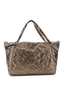bolso shopping efecto piel metalizada, bordado geométrico bronze