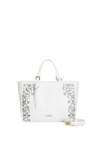 bolso shopping floral cortado a láser con remaches, asas ajustables y bandolera extraíble white