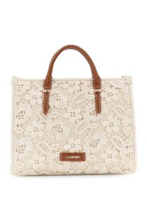 bolso shopping pequeño de macramé con asas efecto piel ecru