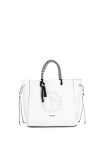 bolso shopping sin forro con asa de cuerda y logotipo cafènoir white