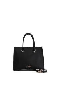 Bolso shopping sin forro con costuras decorativas en contraste asas tubulares y placa con el logotipo.