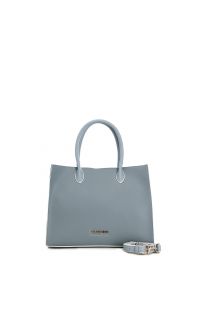 bolso shopping sin forro con costuras decorativas en contraste sky
