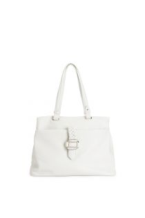 bolso shopping suave con bolsillo delantero y presilla trenzada de metal white