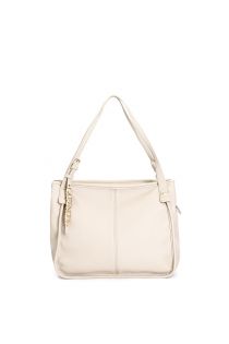 Bolso shopping suave de material de grano grueso bandolera con inscripción de metal práctica partición con cremallera interna para un estilo informal y funcional.