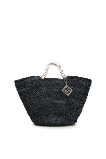 bolso shopping tipo cesta de paja con colgante cafènoir black