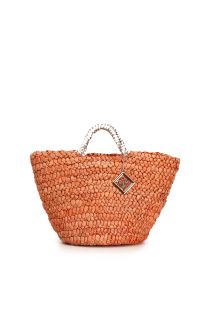 bolso shopping tipo cesta de paja con colgante cafènoir orange