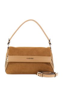 Bolso suave con solapa efecto ante, letras en la cremallera y colgante metálico. Asa de hombro extraíble y diseño elegante para un estilo femenino y contemporáneo.