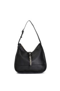 bolso suave de material granate con inscripción, trabilla y bandolera ajustable black