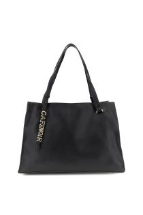 Bolso suave de piel sintética con efecto granulado, amplio diseño suave y asas sin forro con maxi letras metálicas, equipado con un gran bolsillo interior plano con cremallera.