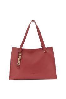 Bolso suave de piel sintética con efecto granulado, amplio diseño suave y asas sin forro con maxi letras metálicas, equipado con un gran bolsillo interior plano con cremallera.