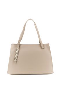 Bolso suave de piel sintética con efecto granulado, amplio diseño suave y asas sin forro con maxi letras metálicas, equipado con un gran bolsillo interior plano con cremallera.
