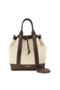bolso tipo cubo con asas efecto lona y ribete efecto piel en contraste dark brown/beige