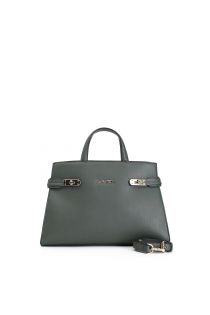 bolso tote con efecto corcho y cierres metálicos green