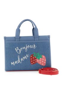 bolso tote de lona y efecto napa con bolsillo y bordado denim