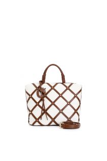 Bolso tote de tela con trenzado efecto de malla y apliques de tachuelas doradas. logotipo efecto piel. cierre de cremallera. bolso con bandolera.