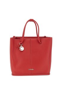 bolso tote efecto piel con asas tubulares y charm de metal. red