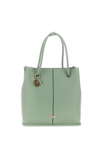 bolso tote efecto piel con asas tubulares y charm de metal. sage