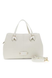 bolso tote pequeño en piel martillada con detalles lisos en contraste ivory