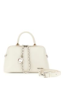 Bolso trapezoidal de piel sintética con cremallera visible, cadena decorativa y colgante metálico. Incluye bandolera ajustable y extraíble.