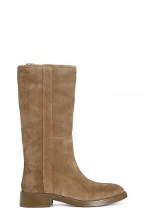 Bota modelo caballero en ante con forma redondeada. tacón de 33 mm de altura. la plantilla es de piel.