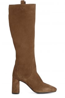Bota de ante. modelo icónico con forma ligeramente redondeada para un estilo innovador y refinado. tacón de 80 mm de altura. la plantilla es de piel.